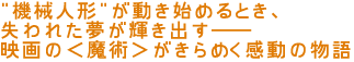 父の“機械人形”を直すために奔走する少年・ヒューゴの、映画の<魔術>きらめく冒険ファンタジー。