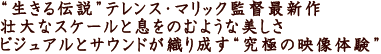 テレンス・マリックの初の長編監督作品は、男女の暗黒面に寄り添う、1973年の『地獄の逃避行』。 それから5年後、20世紀初頭のテキサスで時代に翻弄された4人の若者を描いた『天国の日々』(1978)は、 長編2作目にしてカンヌ国際映画祭監督賞など世界から高い評価を得た。 しかし、そこから彼は約20年の長い沈黙を守ることとなる。 その沈黙を破ったのは、太平洋戦争ガダルカナル島の戦いを舞台に 生死の狭間を生き抜く若き兵士たちの姿を描いた『シン・レッド・ライン』(1998)。 その後、『ニュー・ワールド』(2005)、『ツリー・オブ・ライフ』(2011)、 最新作『トゥ・ザ・ワンダー』(2012)と近年は映画製作の足を早め始めている。