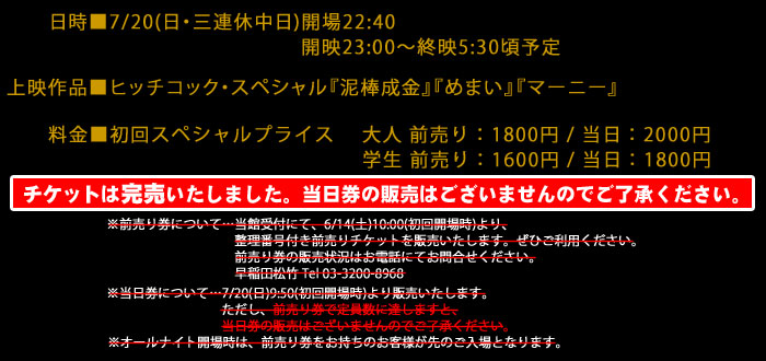 ・混雑している場合は、映画が始まって30分経ちますと、次の回までご入場をお待ちいただくことがございます。