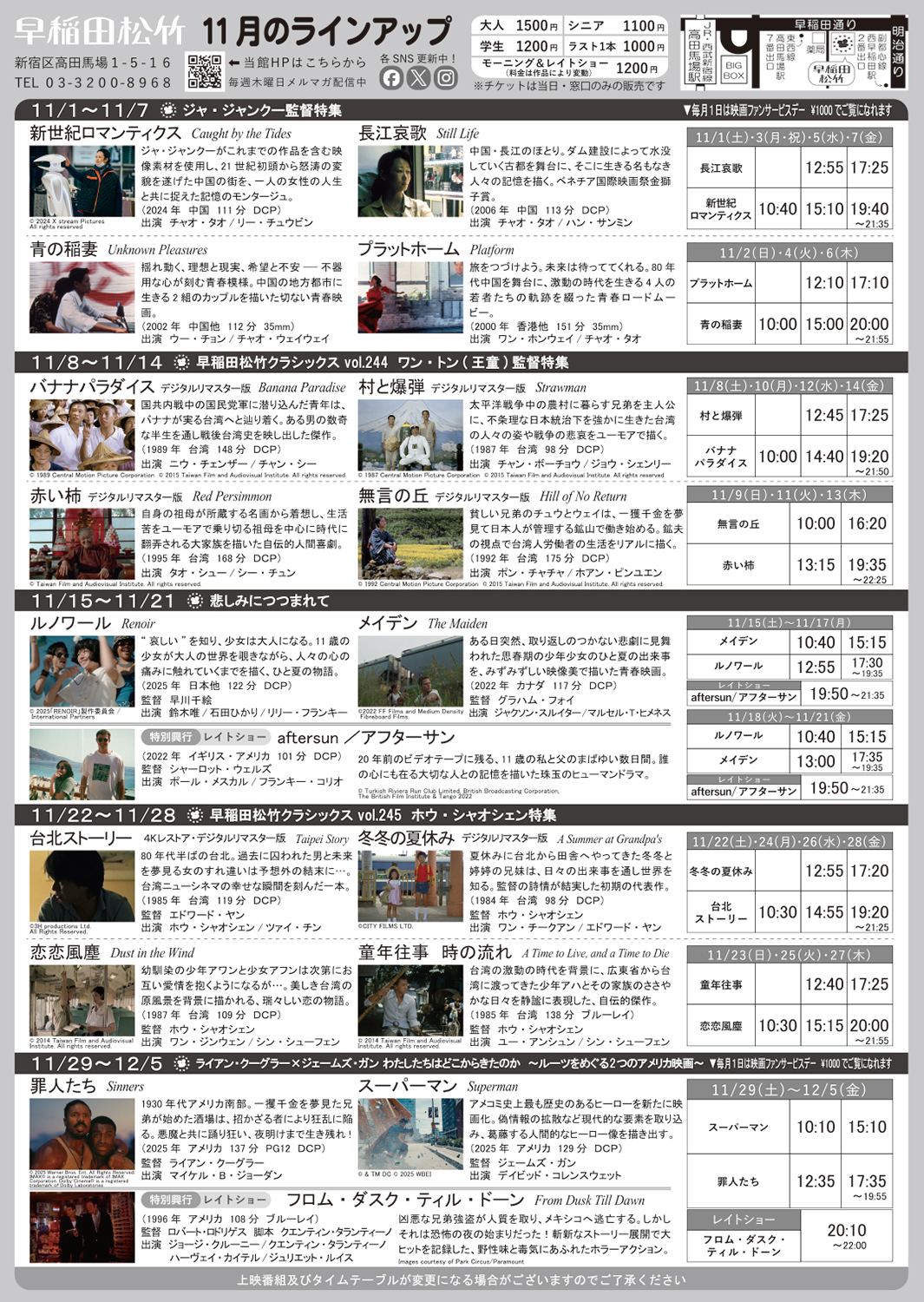 2025年11月のラインアップちらしが出来上がりました! | 早稲田松竹 official web site | 高田馬場の名画座