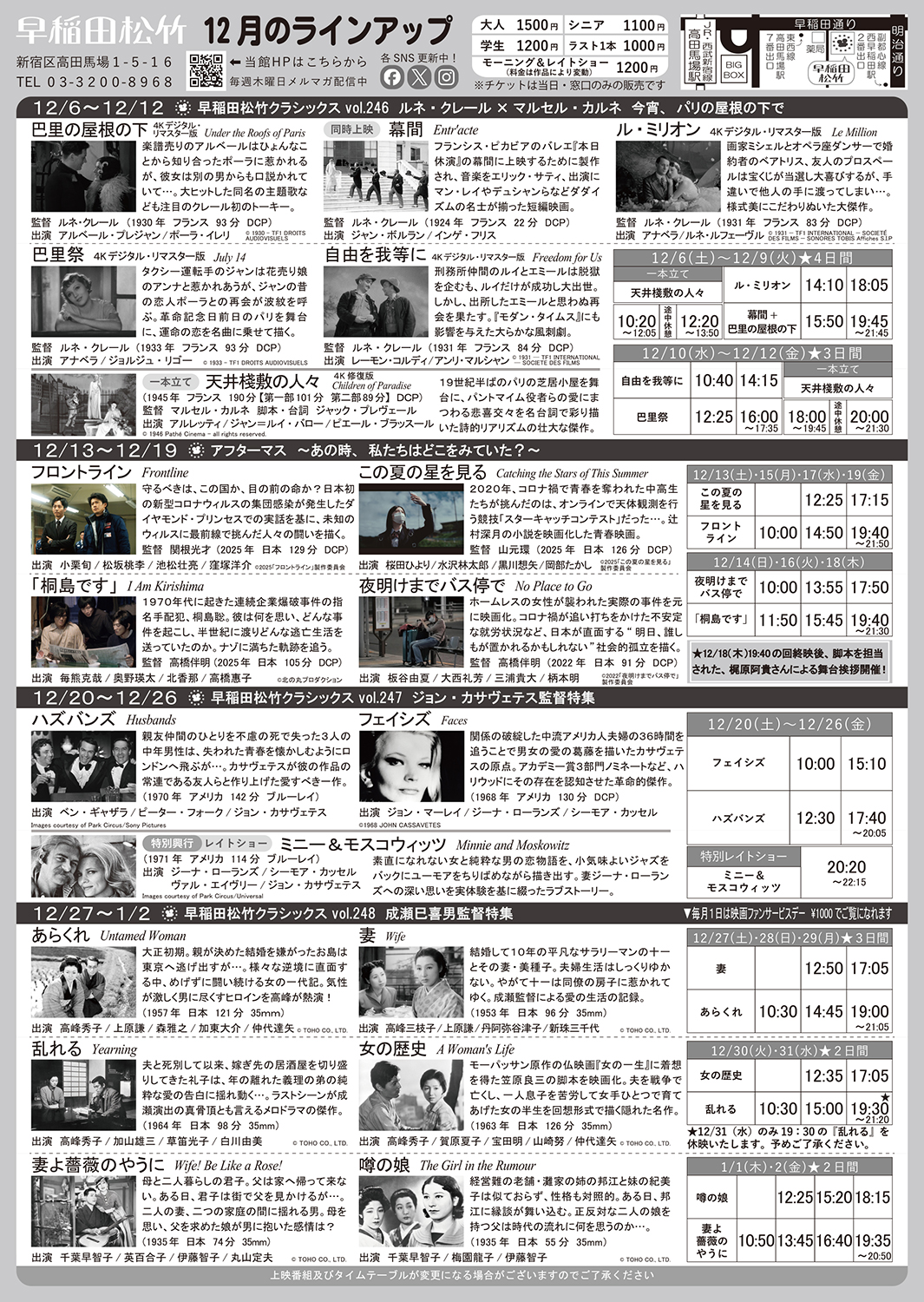 2025年12月のラインアップちらしが出来上がりました! | 早稲田松竹 official web site | 高田馬場の名画座