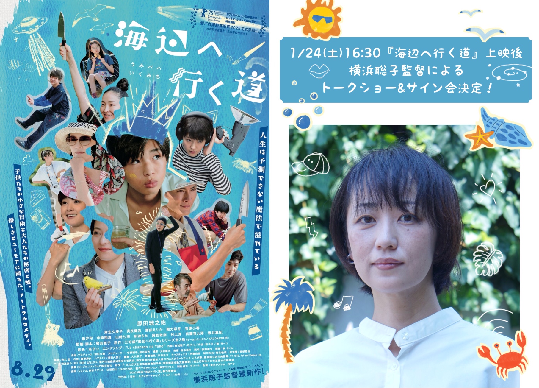 1/24(土)~の『海辺へ行く道』上映に併せまして、横浜聡子監督のトークショーとサイン会の開催が決定しました!皆様のご来場をお待ちしております。
