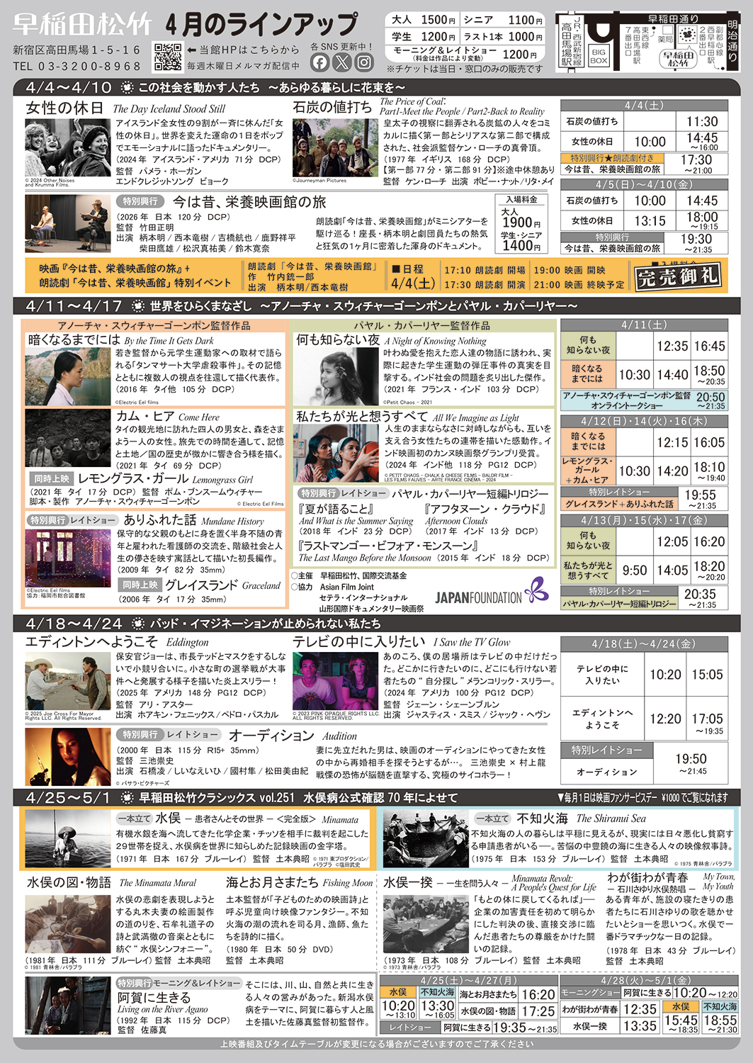 2026年4月のラインアップちらしが出来上がりました! | 早稲田松竹 official web site | 高田馬場の名画座