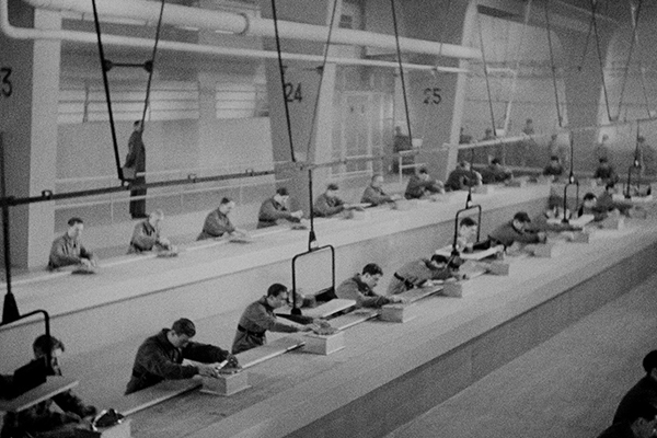金持ちが支配し、機械化する社会への批判がこめられた大らかな風刺劇。ヴェネチア映画祭で絶賛されるも、ファシスト政権下のイタリアや、ナチス・ドイツなどで上映禁止処分となった。おもちゃ箱のような工場の美術はユニークで、お金が空中に舞うラストシーンは圧巻! チャップリンの『モダン・タイムス』にも影響を与えた名作。